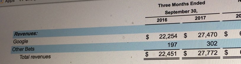 | Other Bets | Revenues | $197 | $302 |