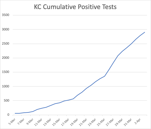 New data! We seem to be leveling out around 1000 tests per day – I’d rather see that increasing, but there’s a shortage of them. Grr. See my earlier note today about my frustrations and the limitations in the data we’re getting.