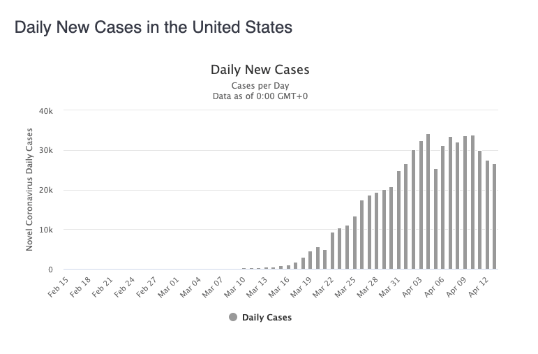 The data says that we’ve successfully stepped off of the horrific exponential curve that we were on, primarily driven by New York and New Jersey. It turns out they’ve been fairly successful, and that’s driving this success. But nothing in the national data says we’ve turned the corner and our new infections are down to zero.