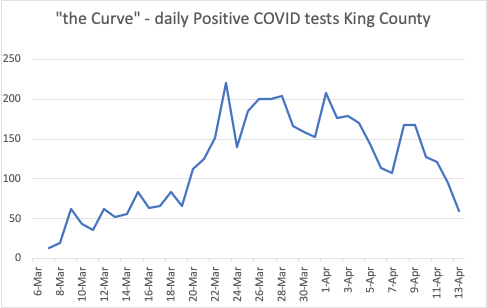 I still think testing is a very conservative measure – remember that nearly anyone who gets a medium to severe case of COVID will show up at the ER to be tested. So the 60 or so cases we’re seeing each day is probably nearly everyone in King County who is symptomatic.